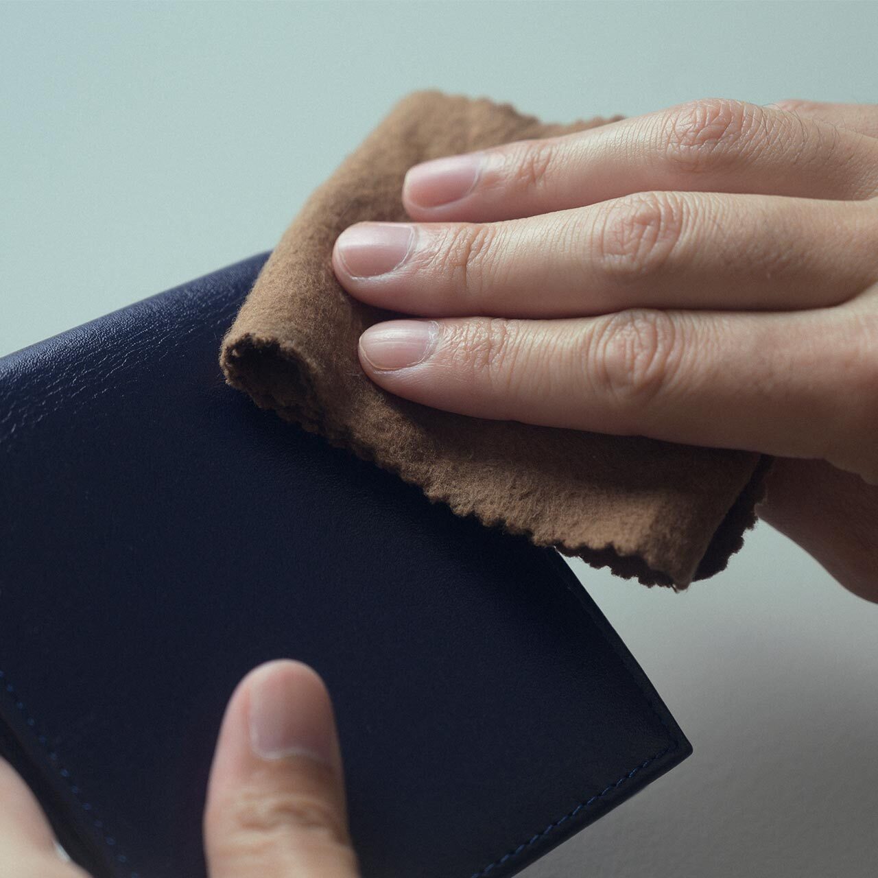 革がゆっくりと呼吸を整えるように乾いたら、仕上げにもう一度やさしく拭き上げます。ベタつきが抑えられ、お手入れの完了です。