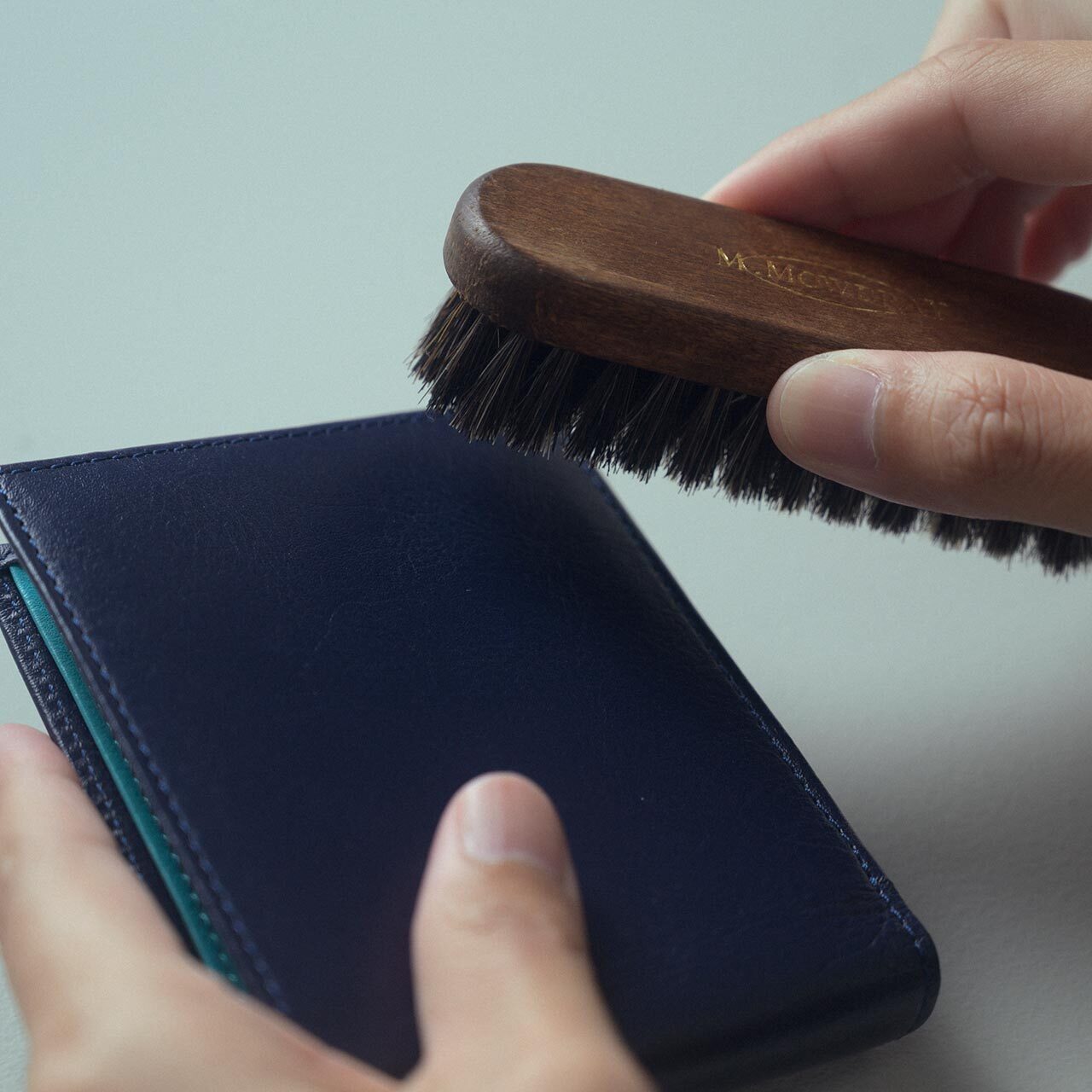 革小物であれば、2~3ヶ月に1回程度のお手入れで十分長持ちします。新品のレザーも意外に乾燥している場合があるので、購入された「その日」にお手入れをしておくと、グッと長持ちして、お気に入りのアイテムを「育てる」ことができます。