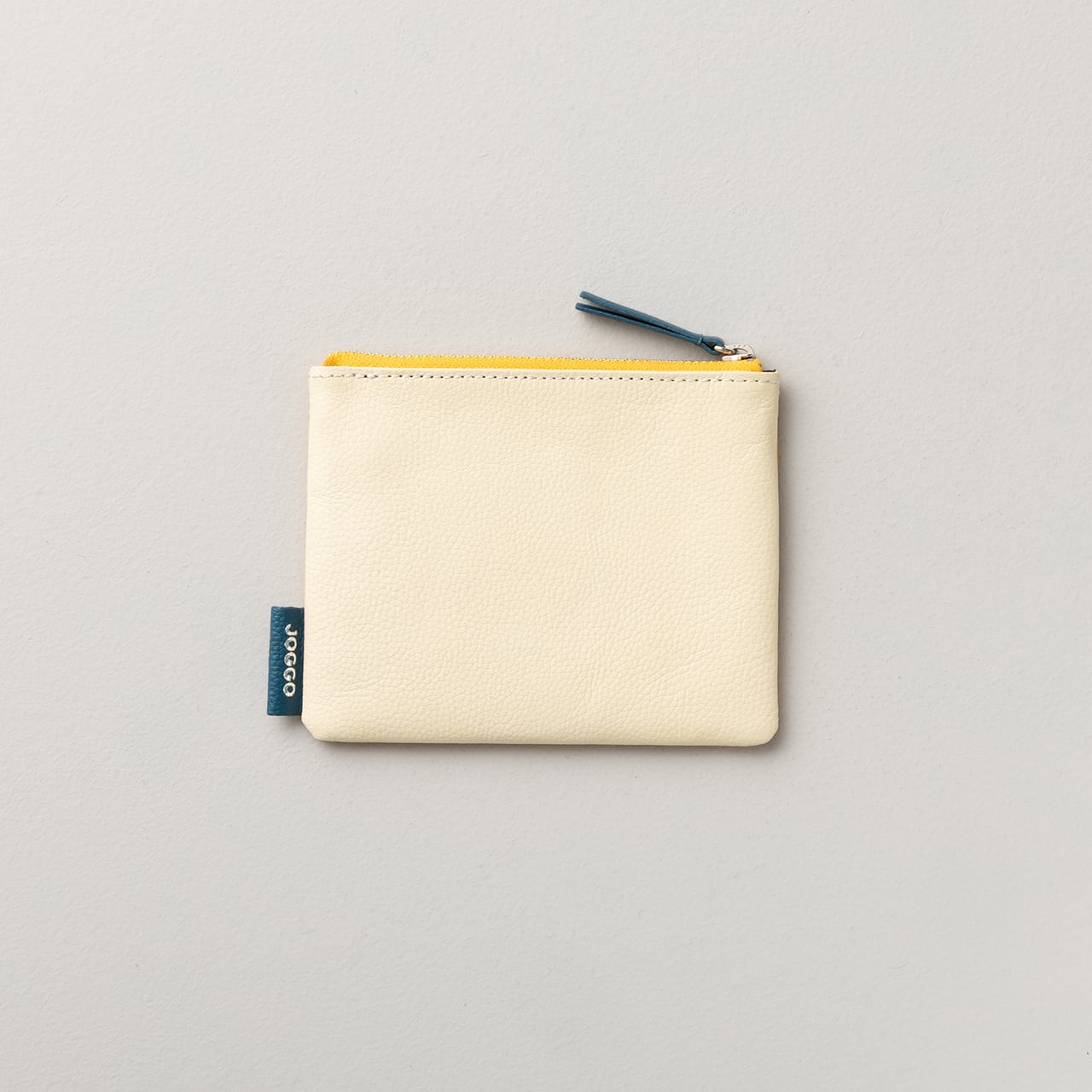 【SALE 20% OFF】フラットレザーポーチS| 限定色 -キンモクセイ・アイボリーホワイト・ピーコックブルー