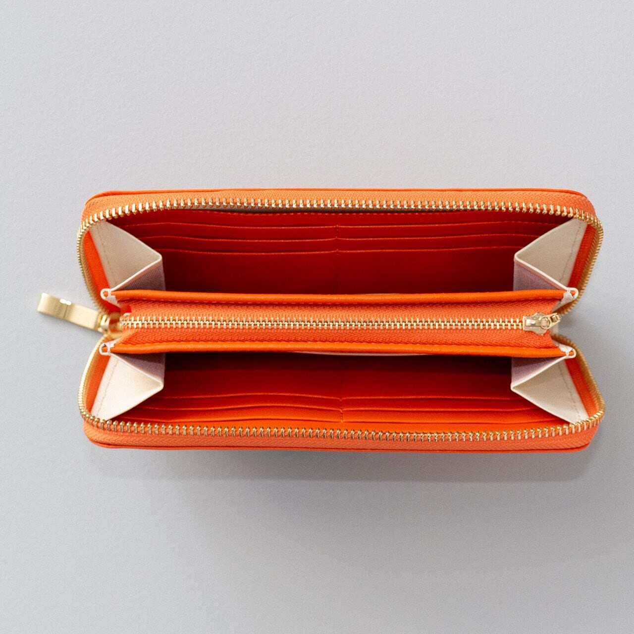 ・ファスナー式で安心の小銭入れには、便利な間仕切りもついています。大きく開くL字ファスナーを採用しました。使いやすく、収納力も抜群です。