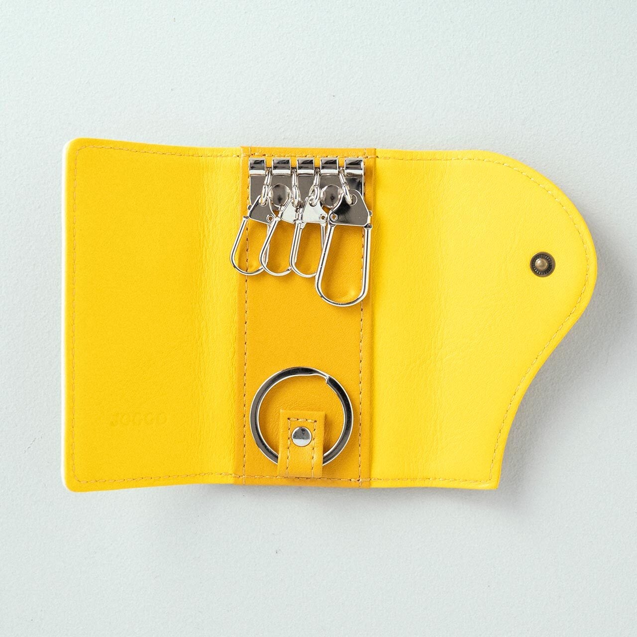 小3つ、大1つの4連キーフック仕様。コンパクトに鍵を収納できます。背面にはスリットがあるのでお札を折って入れることも可能(ICカード等は入りません)。